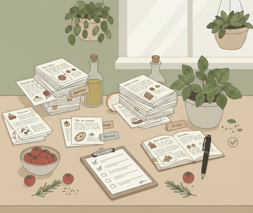 Once you have chosen your theme, it is important to curate your recipes wisely. Here’s how to go about the process: